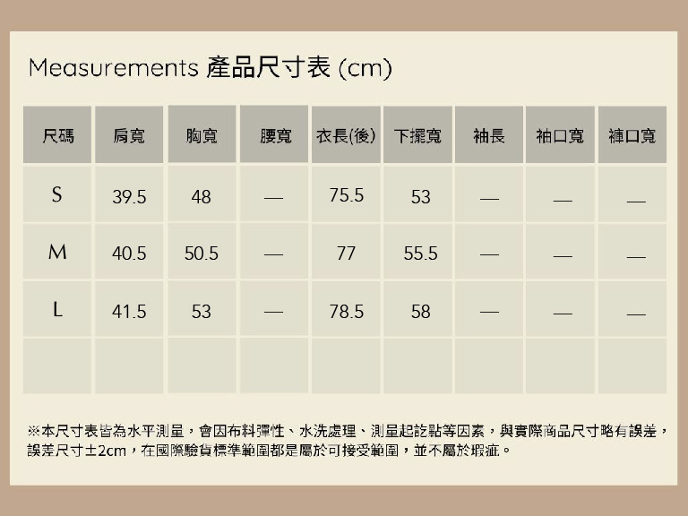 7.如需整燙,請以低溫墊布熨燙,溫度不可超過110℃。